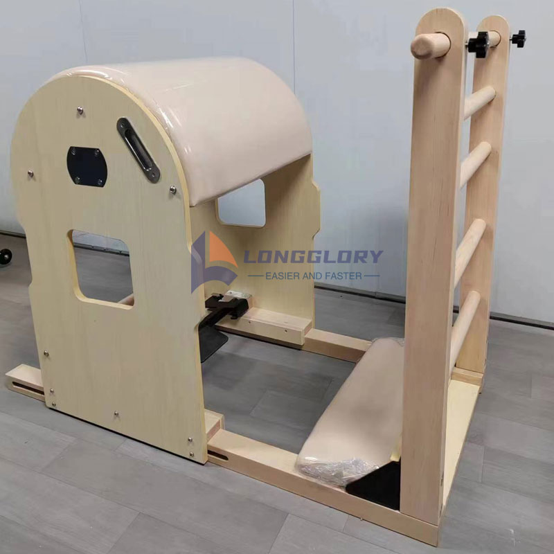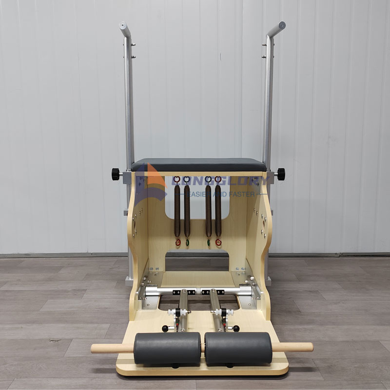 3. पिलेट्स कुर्सी: डिजाइन सार: कार्यक्षमता र पोर्टेबिलिटीलाई सन्तुलनमा राख्ने चलाख डिजाइनको साथ पेडल, समायोज्य स्प्रिङ्हरू, नन-स्लिप ह्यान्डलहरू, र आरामदायी सिटलाई एकीकृत गर्दछ। प्रशिक्षण फोकस: एकपक्षीय अंग समन्वय र गतिशील सन्तुलनलाई बलियो बनाउन, हिप र खुट्टाको रेखाहरू सटीक रूपमा मूर्तिकला, र कोर मांसपेशीहरूलाई गहिरो रूपमा सक्रिय गर्न जोड दिन्छ। उपयोग हाइलाइटहरू: कम्प्याक्ट र स्पेस-बचत, विशेष गरी घर सेटिङहरूको लागि उपयुक्त; लचिलो समायोज्य प्रतिरोध विभिन्न प्रशिक्षण चरणहरूमा अनुकूलन गर्दछ। क्लासिक आन्दोलनहरू: स्टेप-अप प्रेस (एयर कुसन) र एकल-खुट्टा ब्यालेन्स प्रशिक्षणले तल्लो अंग बल र सन्तुलन नियन्त्रणमा सुधार गर्दछ।